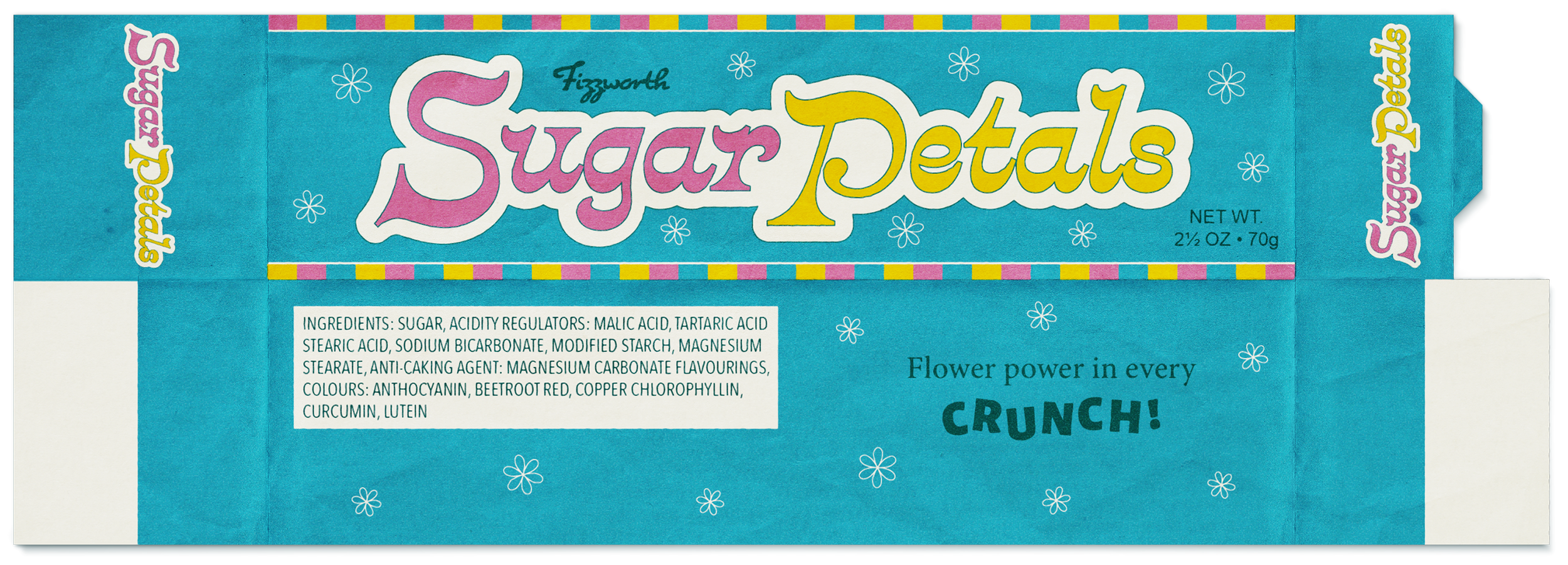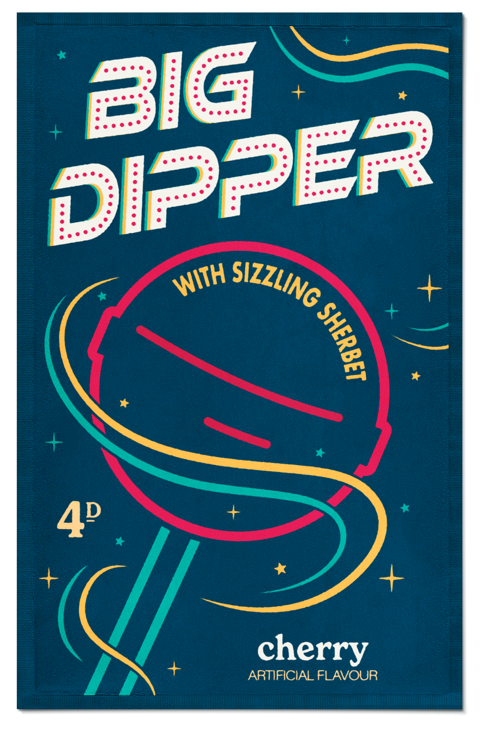 This personal project explores a 1970 confectionery shop through a series of bold, playful graphic props. The work draws on the visual language of the era, using vibrant colour, fun typography and detailed packaging design. All illustrations are my own.